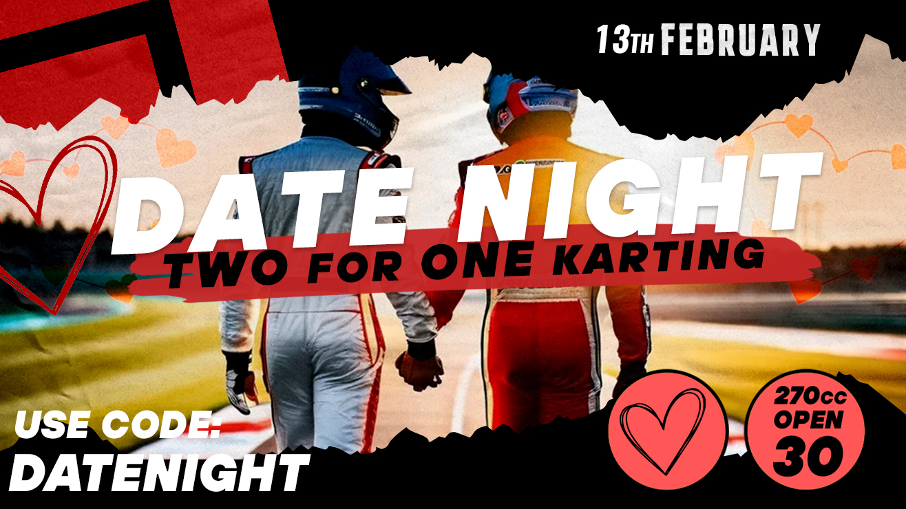 Love is in the air… and on the track! This Friday 13th Feb from 4pm onwards, we’re bringing back our Valentine’s Date Night with a deal you’ll love: BUY ONE, GET ONE FREE270cc OPEN 30 Karting Sessions Bring a date or a mate – partner, bestie, crush, sibling… anyone!It’s all about sharing the love, the laughs, and a little friendly…